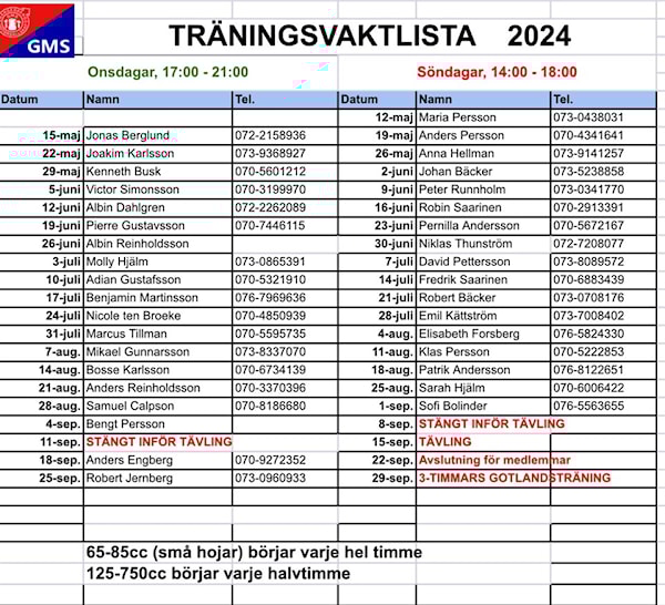 Träningsvaktslistan är klar och du får själv ansvara för att byta dag om du inte kan på det datum du är uppskriven på.